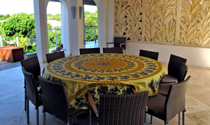 A central hole for the umbrella and an open-end zipper for easy fitting is an extra $25 on top of the cost of the tablecloth. |